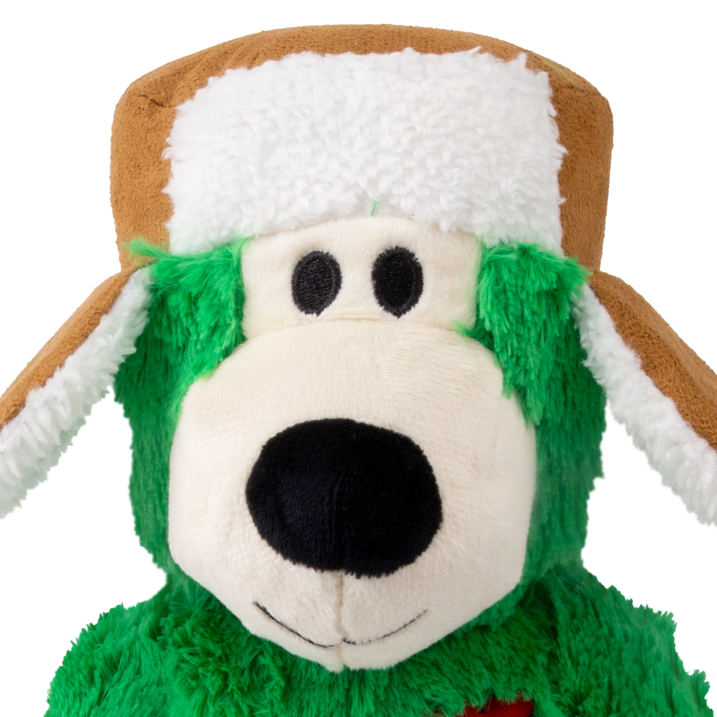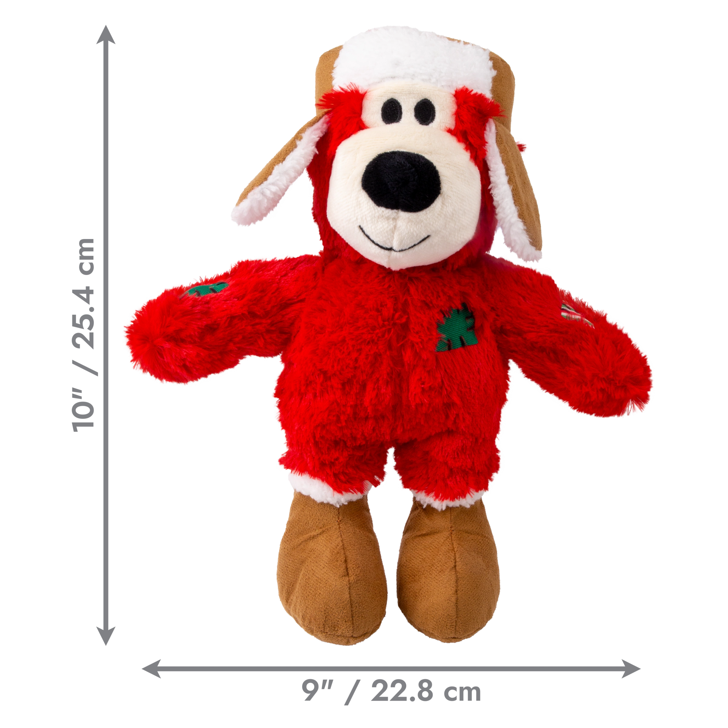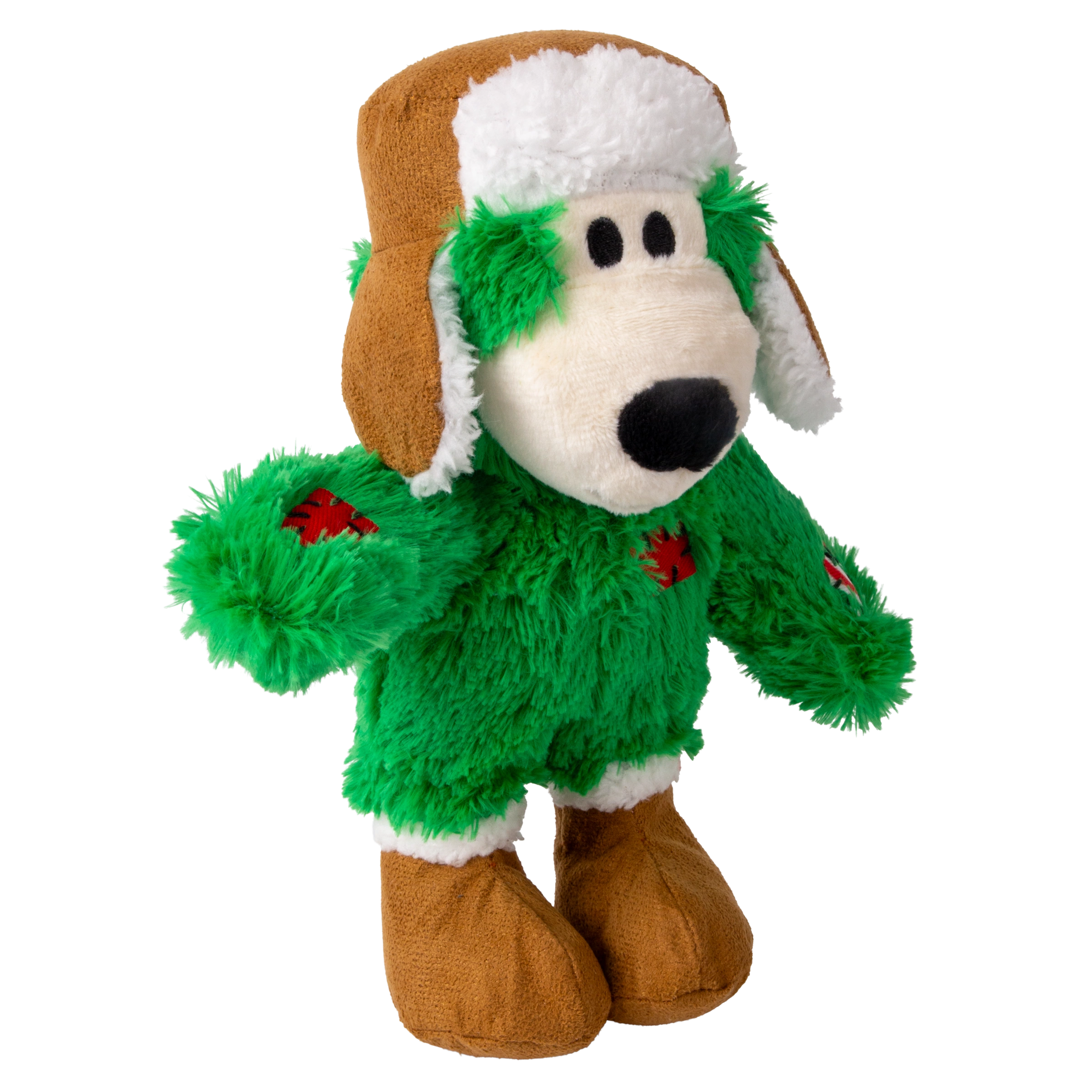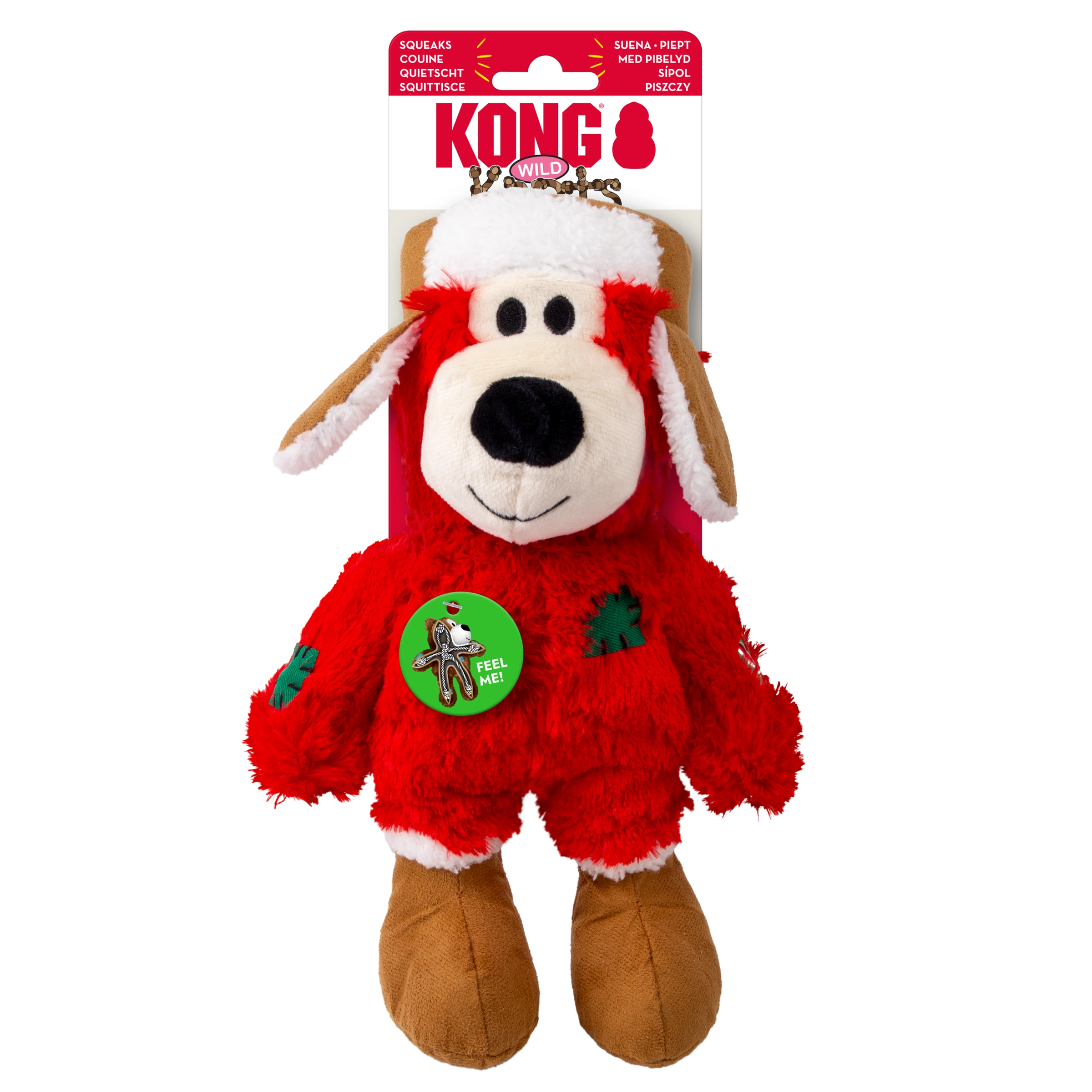 KONG Holiday Wild Knots Bear provides the perfect indoor play and snuggles on cold winter days. A winter sweater and scarf on the outside keep them warm, while an internal knotted rope, squeaker, and reinforced plush keep them durable on the inside. Less stuffing makes for less mess if things get too wild!