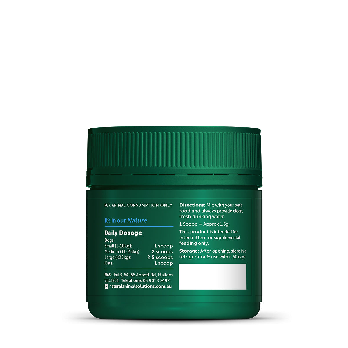 NAS Gut Balance Probiotic (Natural) is a high strength, carefully formulated, powdered blend of 5 live probiotic strains together with both soluble and insoluble fibres, vitamins minerals. Over 20 billion cfu per 5gm serve. Enhancing the immune system and digestive function which in turn, impacts almost every part of your pet’s body.