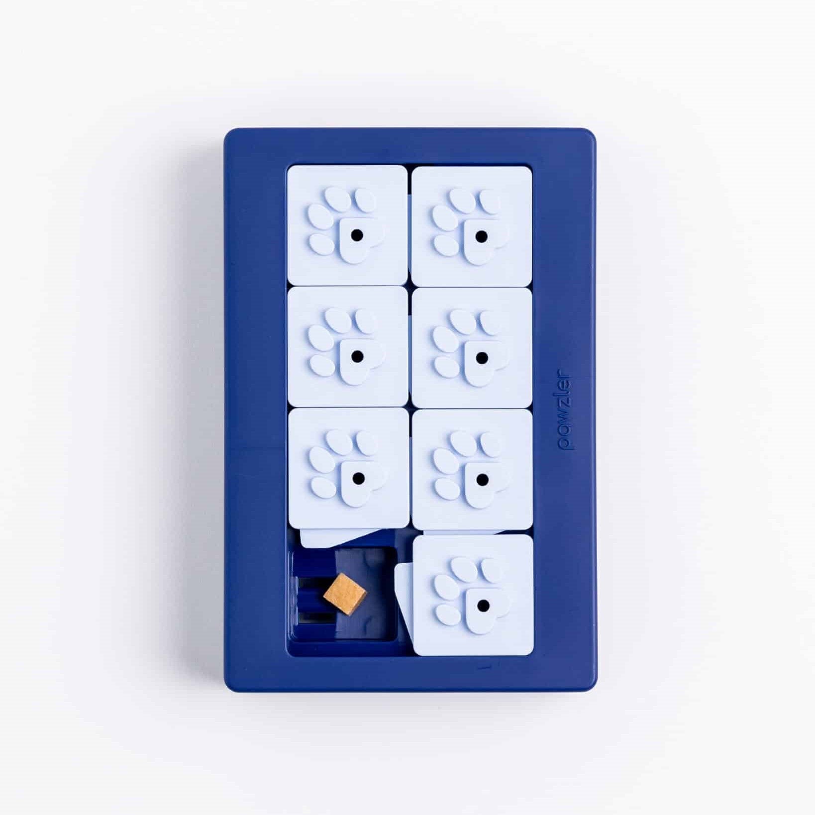 This item is a single Louvre pawzle only (base not included), and is a great addition for increasing the number of combinations on your base.  Louvre is our biggest pawzle yet, taking up 6 spots on the base.  It requires pushing the sliders in multiple directions to uncover the treats underneath them.  The sliders can be pushed with a dog’s nose, tongue, or paw.