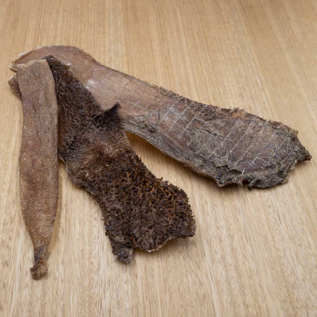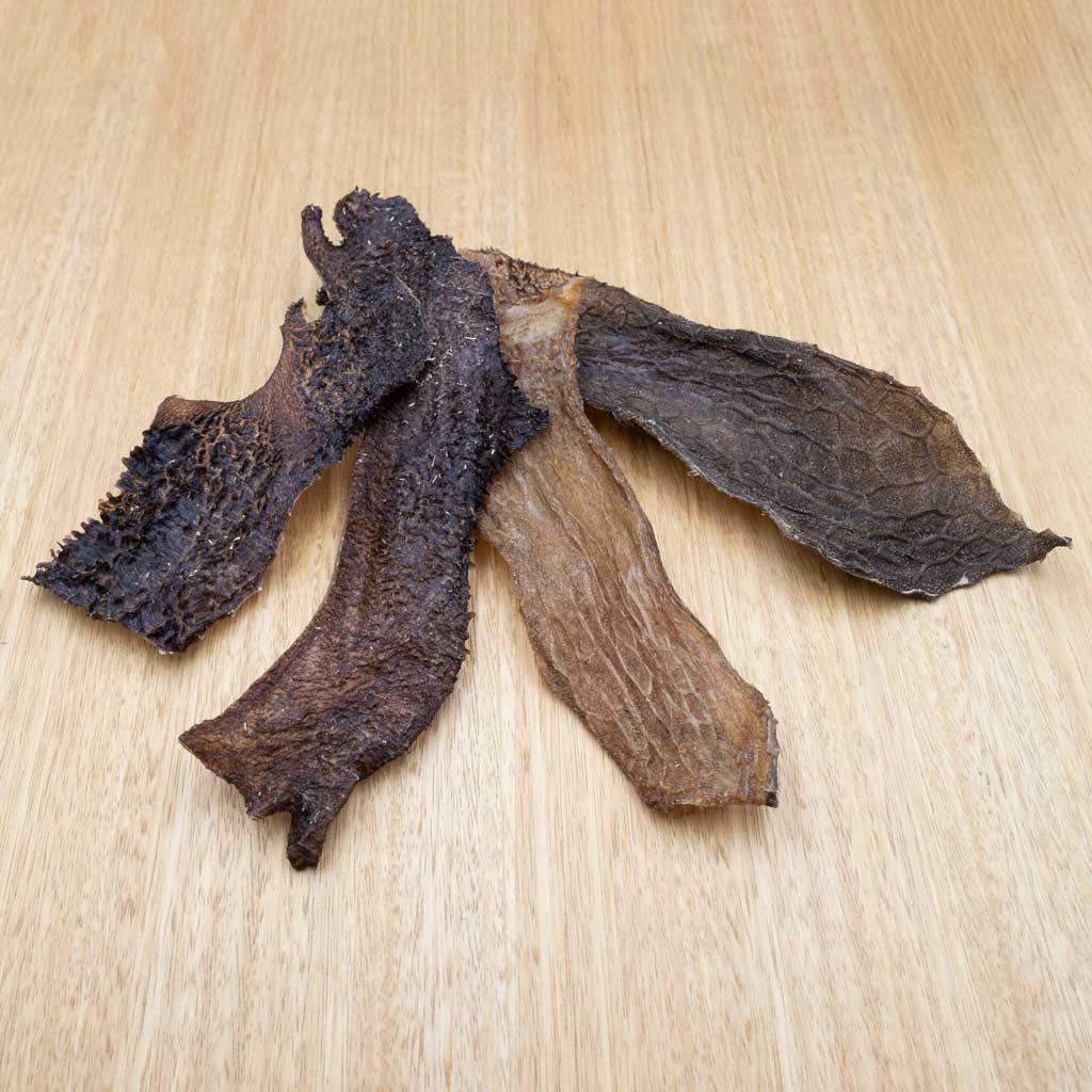Our goat green tripe is made from raw, natural goat tripe that is still green.  It has been sliced and dried.  Green tripe is rich in beneficial bacteria, such as Lactobacillus Acidophilus, which promote a healthy gut microbiome.  A balanced gut flora, supported by the probiotics in green tripe, enhances immune function and helps reduce the amount of harmful bacteria.  It contains natural enzymes that help dogs break down and absorb nutrients more effectively.  This can help dogs with digestive issues, sensitive stomachs, diarrhea, chronic constipation, and symptoms of IBS.  Some studies even suggest that green tripe can lower the risk of pollen and environmental allergies.  The strong, appealing smell and taste of green tripe can also stimulate the appetite of fussy or picky dogs.  It is suitable for all dogs of all ages.  This is a boneless treat that is easily broken/cut into smaller pieces.  As it is such a quick and easy treat for dogs to eat, it is a good indoor treat – not too messy.